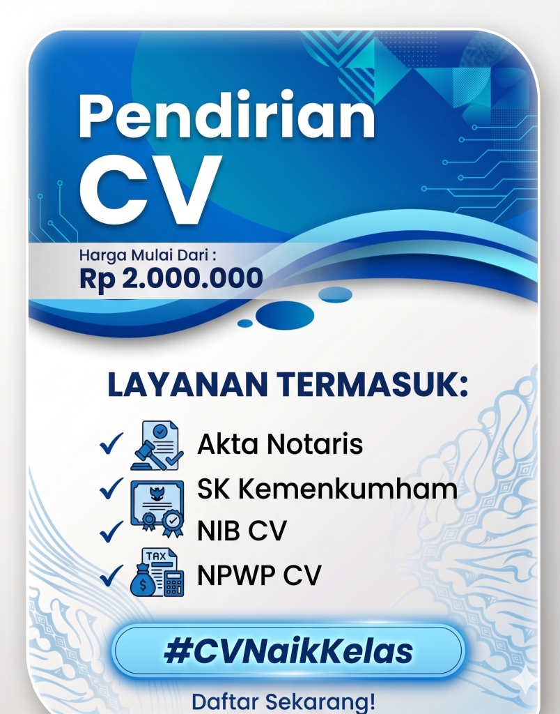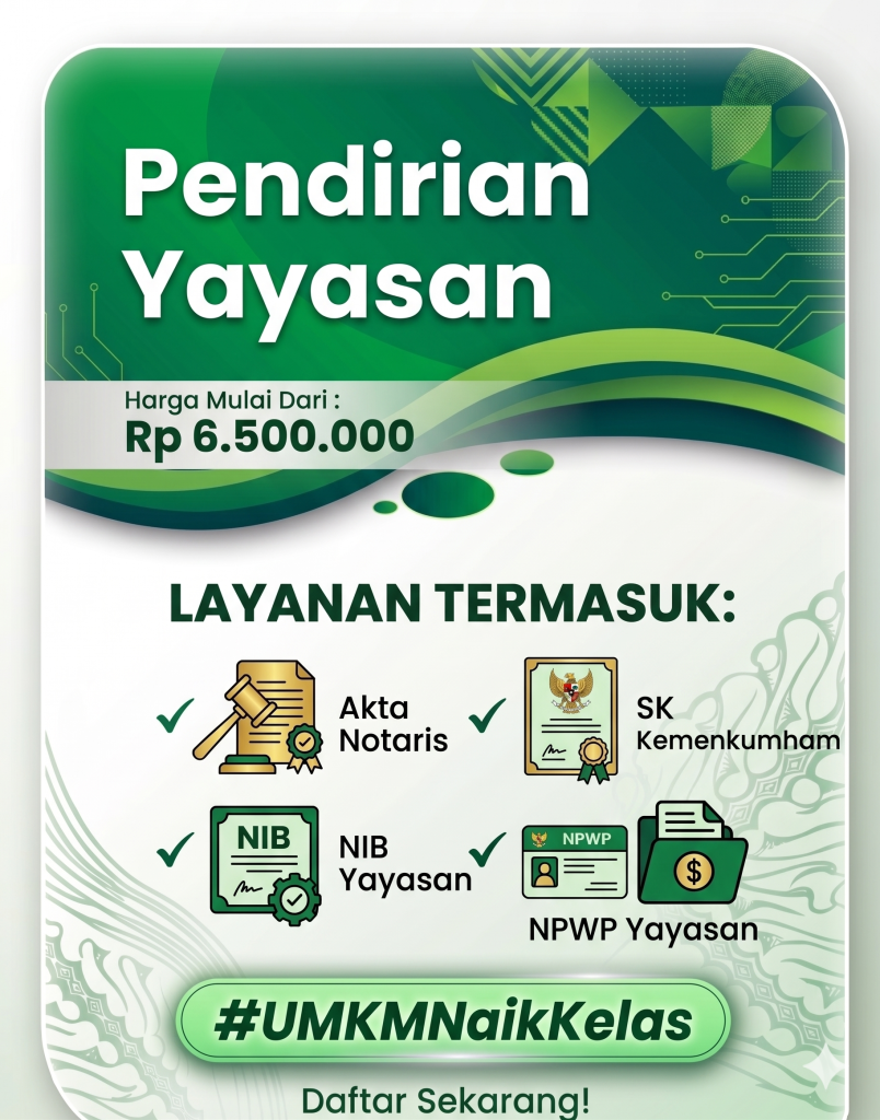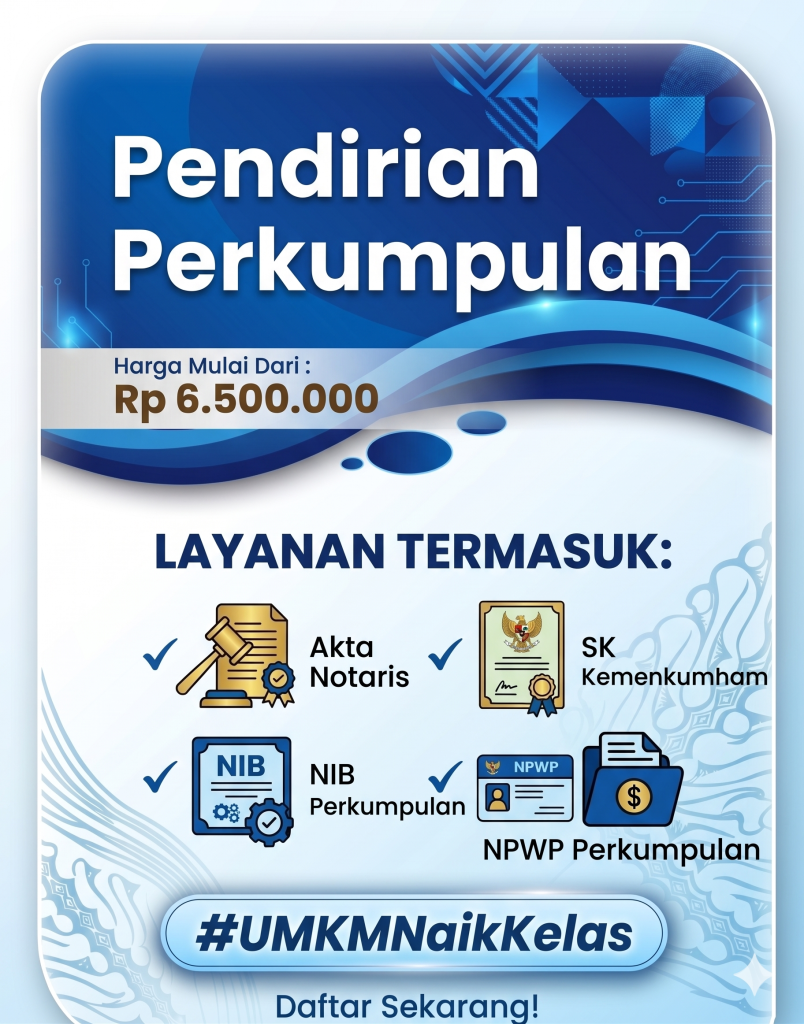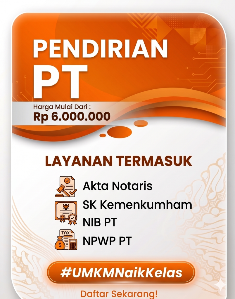 Pendirian PT Perorangan Pendirian CV Pendirian Koperasi Pendirian Perkumpulan Pendirian Izin UMKM Perubahan Akta PT Perubahan Akta CV Perubahan Akta Yayasan